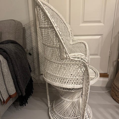 Korgstol köpt i antikaffär. Fint skick! Står i min kolonistuga i Skrubba. Kan hämtas under helgen, tar Swish!