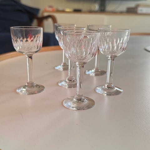 7 st Mine snapsglas i grönt, vitt och svart.