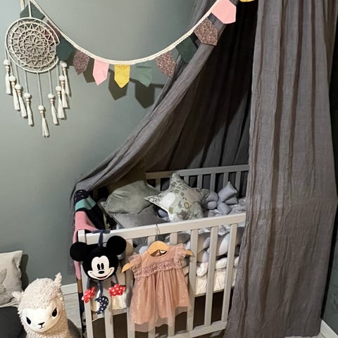 IKEA Sundvik spjälsäng som är extrautrustad med låsbara hjul. Fantastiskt när du ska vagga ditt barn till sömns. Fint skick.