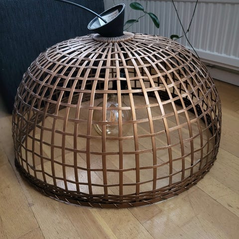 Glödlampan medföljer och är av sotat glas som ger ett ”amberljus”
