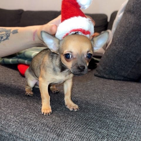 Uppfödd på kvalitetsfoder i familj van vid barn. En liten hund som vuxen kommer väga 2,5-3,5 kg.