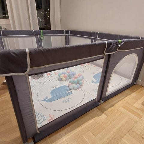 Säljer bollhav/lekhage då den inte kommer till användning. Finns madrass och skydd till samt bollarna givetvis. Några pinnar är borttagna för barnet skulle kunna gå in och ut lättare men finns och kan sättas dit. fint skick.