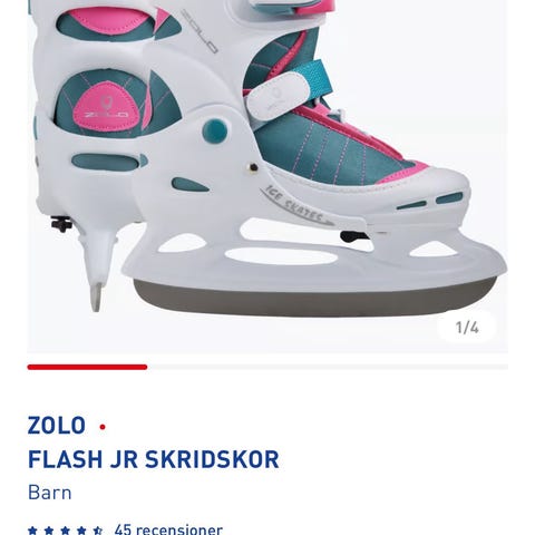 Barbie skridskor i barnstorlek 38. Skridskorna är vita med rosa snören och har blommönster. Designade för övriga skridskosporter.