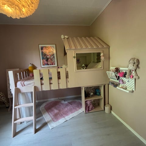 Om man hänger upp en gardin på sängen kan man enkelt skapa en mysig koja på rummet, som är lite avskärmad från resten av rummet.