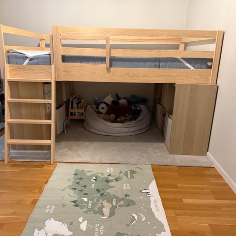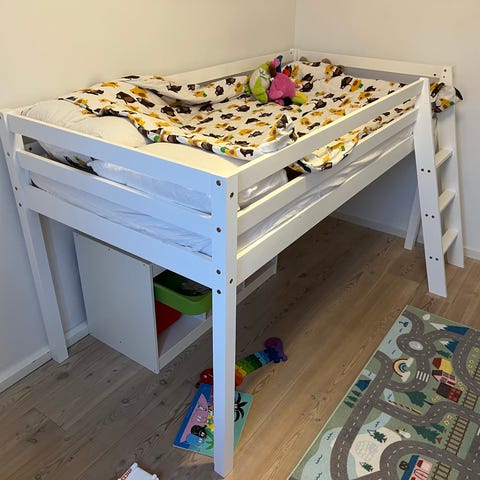 Fin halvhög loftsäng som är redo för nästa barn. Köpt ny av oss men nu när ska barnen få egna rum så är önskemålet en ny drömfarkost. Så nu letar denna säng ny kompis.