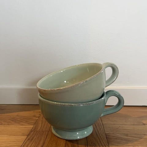 Två st jätte fina Spode blue collection jumbo te kopp och fat rymmer 56 cl som nya bara stått i ett skåp. Nypris 699kr säljes för 1000kr för två