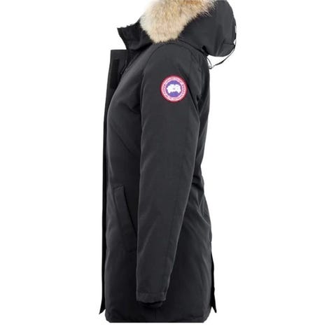 Säljer en svart lång dunjacka från Canada Goose med den ikoniska loggan på ärmen och fluffig äkta päls runt huvan. Jackan har dragkedja och knäppning framtill, långa ärmar och en tidlös, stilren design som håller dig varm hela vintern.