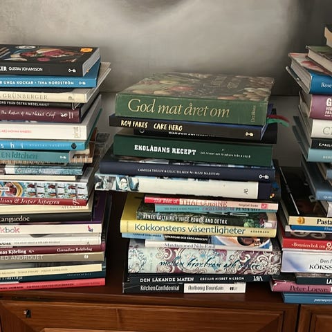Boken på bilden är en utökad upplaga av Anna Bergenströms populära kokbok "Annas mat", utgiven av Albert Bonniers Förlag. Denna specifika kopia såldes på Bokia med ett rabatterat pris.