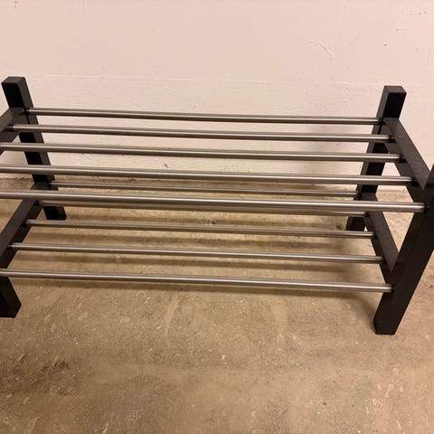 Skoställ 2st enligt bild. Monteras på väggen och ger en känsla av att skorna svävar i luften. Kul idé men fungerar inte så bra med små barn