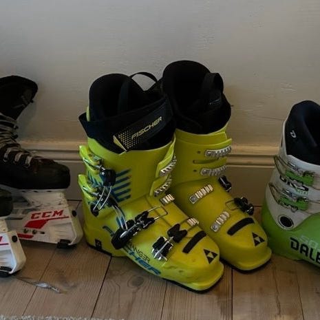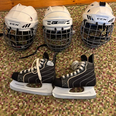 Barnskridskor Jofa storlek 35 säljes. Har även tre hjälmar som vi också säljer 25 kr st. Hämtas i Gamla stan.