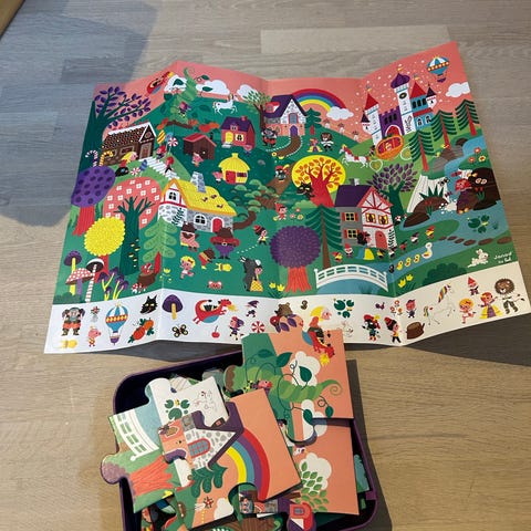 Sverige Pussel med 100 bitar, storlek 24x36 cm. Pusslet visar en karta över Sverige med illustrationer av olika djur och geografiska platser. Har räknat bitar.