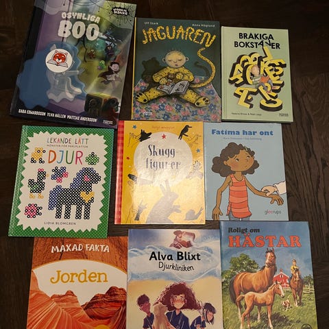 Exempel på böcker: Nemo, Nalle Puh, Hans&Greta, Lejonkungen, Ringar i Notre Dame, Robin Hood, Barnens A-Ö, Mina första 1000 ord och mycket mer. Pris från 20kr/styck