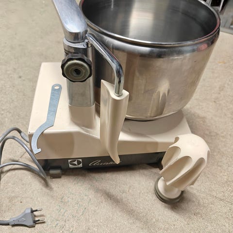 Denna Electrolux Assistent med beteckning NG1 och serienr 0001390, alltså en av de första att tillverkas 1940, fungerar fortfarande utmärkt. Säljes med ny anslutningskontakt och två originaltillbehör i trä. Fler tillbehör som alla passar går att köpa på tradera bl a. Maskinen har gått i arv inom familjen. Har stått många år i förråd och är alltså inte regelbundet använd sedan inköpet!