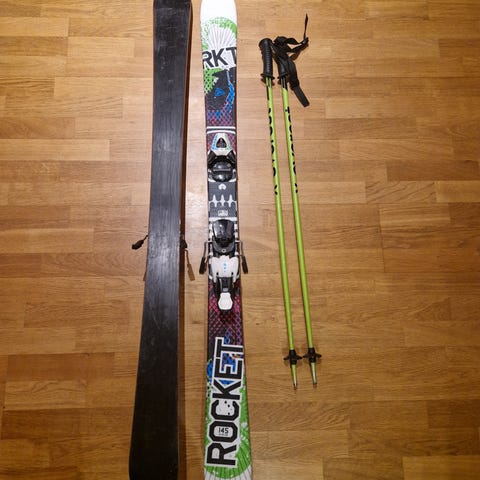 SÅLDA Skidor Rocket Firefly längd 135 cm 500kr, ok skick