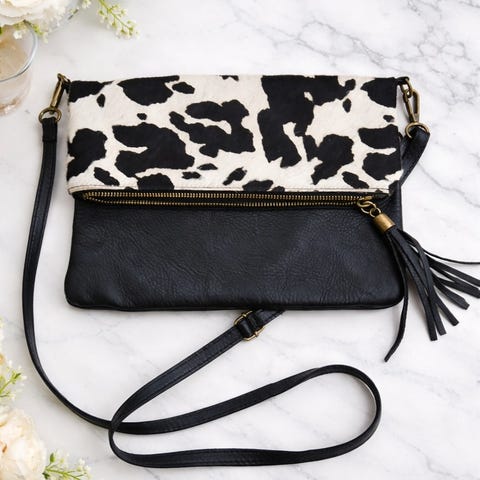 Äkta skinn, 3 rejäla hela dragkedjor och en liten hållare för mindre mobil inuti. Snabbfack 2 större på framsidan och ett extrafack m hel dragkedja mot kroppen.