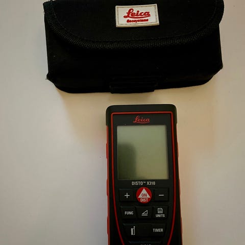Leica Disto D210 laseravståndsmätare med kompakt design och digital display. Används för exakta mätningar av avstånd i olika miljöer. Levereras med skyddande fodral.