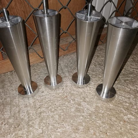 8 st sängben i massiv Ek inkl. skruv. Obs! finns en liten spricka i ett av benen men för övrigt i fint skick. 550:- för alla 8.