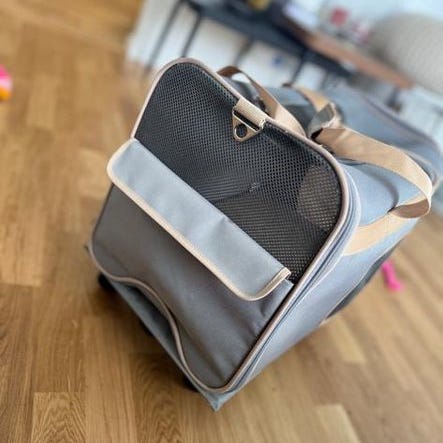 Väska använd bara två gånger, är för stor för vår hund. Storleken är XS och rekommenderad rygglängd på hunden är 56-60 cm.