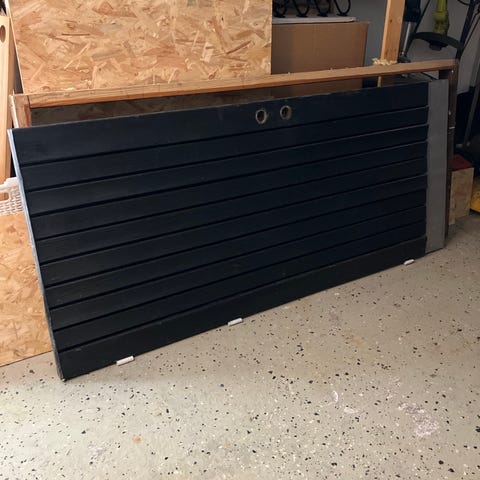 Säljer en garagedörr med tillhörande dörrkarm i bra och fullt fungerande skick.