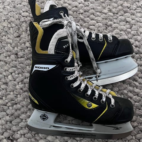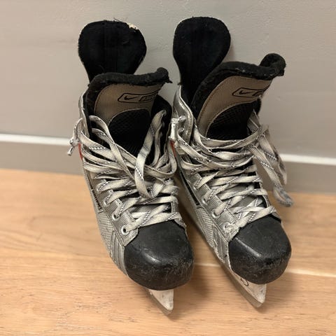 Ishockeyskridskor i storlek 36 med svart och grå färg. Passar för ishockeysport. Material och märke är inte specificerat.
