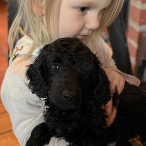 Hon är en glad klok pudel.