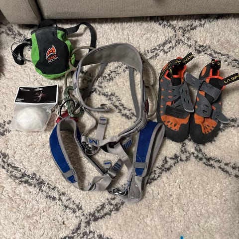 - Madrock klättringssele i storlek M med tillhörande väska,