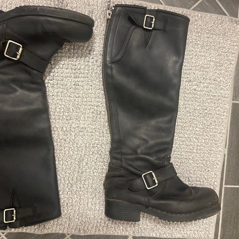 Detta är den ursprungliga stöveln från Johnny Bulls. Trendig highboot i kvalitetsläder med dekorerad metalldragkedja mitt bak. Remmarna med metallspännen gör det möjligt att justera skaftets bredd.