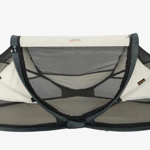 Fin resesäng från Deryan. Sparsamt använd. Ihopvikbart till lilla väskan på bild. Tunn madrass.