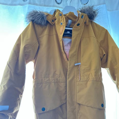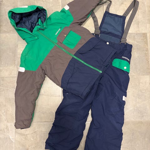 Didriksons overall i storlek 140 för barn, unisex. Tillverkad i polyester med flerfärgat mönster. Overallens design inkluderar flera färgblock och är lämpad för utomhusbruk.
