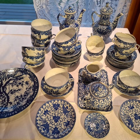 Slitage. Missfärgning kanna, mugg och fat.
