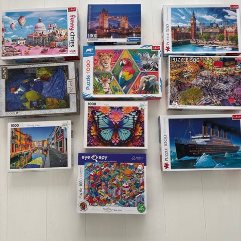 Pussel med motiv av en ekorre och blommor. 1000 bitar, med mått 48x68 cm. Är öppnat, har använt varsamt men kan inte garantera att alla bitar finns i.