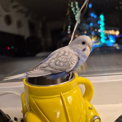 Mina undulater lever verkligen i en lugn och omhändertagen miljö med mycket kärlek och frihet dem gillar när det är mycket uppmärksamhet till dem🕊️💛 Jag lägger stor vikt vid att de ska må bra både fysiskt och mentalt – därför får de daglig tillsyn, färskt vatten morgon och kväll, och varierad kost med både fröblandning, grönsaker och frukter.