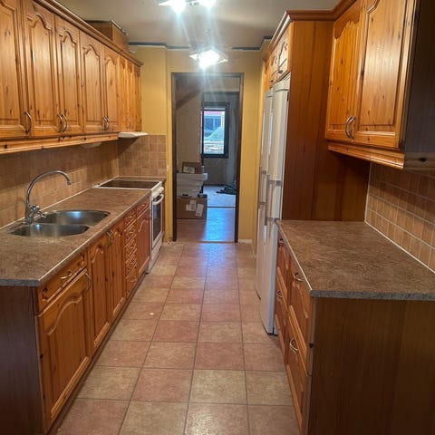 Köket är Älvsbyhus egentillverkade med rejäla stabila stommar. Luckorna är slitna, men är hela.