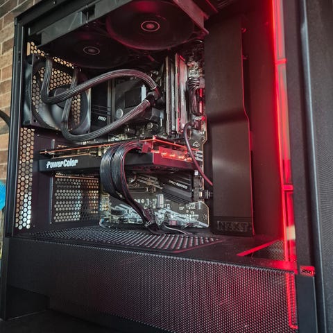 Lenovo Legion T530 speldator med Intel Core i5-9400 processor, 8 GB RAM och 252 GB SSD-lagring. Datorn har en svart chassi med röda LED-lampor och är utrustad med Windows 11 Home operativsystem. Passar för spel och allmän datoranvändning.