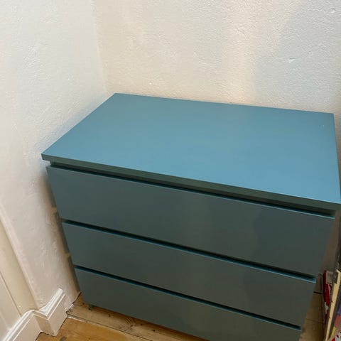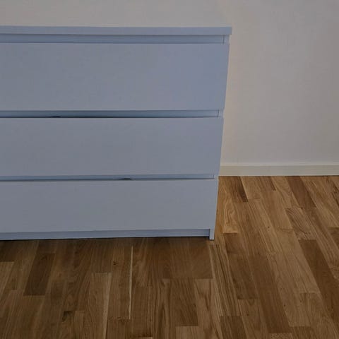 Byrå Ikea Malm fint skick utom två märken se bilder. Lådor och botten mycket bra skick. För mått se bild