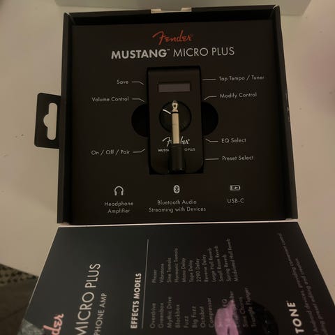 Fender Mustang Micro är en kompakt hörlursförstärkare för gitarr. Simulerar ett antal olika förstärkarmodeller, allt från rena fender till tyngre distade, typ marshall.