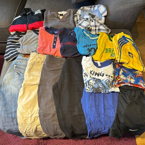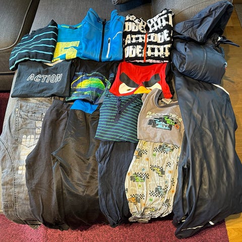Rensat sonen garderob. Han är 12,5år och dessa är precis för små.