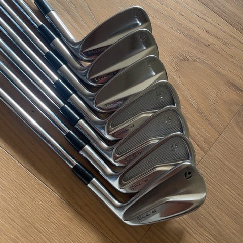 Taylormade p770 4, 5 och 6 p7mb 7-pw i bra skick smutsig på bilderna och ett litet stenslag på pw men annars 👍 skaften är stuff och greppen är i ok skick.