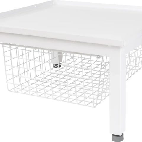 Två stabila tvättmaskinsställ i mått B 61 cm / D 55 cm / H 31 cm, inklusive varsin tvättkorg (tråd). I mycket bra skick, utan färgflagor, skevhet eller liknande. Säljes tillsammans för 900 eller var för sig för 500.