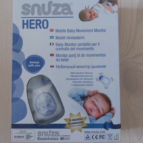 Snuza HeroMD är ett mobilt andningslarm för spädbarn. Andningslarmet är certifierat medicintekniskt och bevakar ditt barns andning medan det sover. Du fäster det på blöjan eller byxan och det kan användas på natten i sängen eller på dagen när babyn sover. Kartongen endast öppnad men den är aldrig använd då vi redan hade ett andningslarm. Nypris ca 1300 säljes för 1000. Finns att hämta i Partille eller så står köpare för frakt.