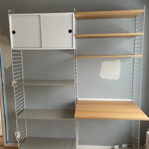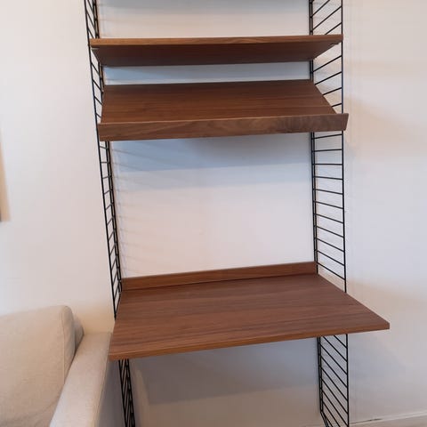 Säljer vårt fina string skrivbord med tillhörande hyllor i en läcker svart design.