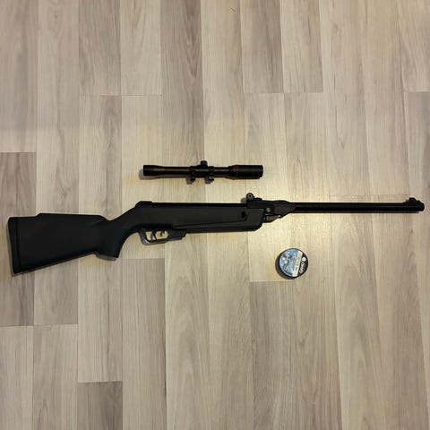 Luftgevär i nyskick, endast testat. Fodral och hades diablo .22 luftgevärskulor följer med.