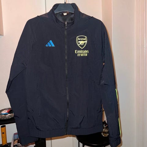 Blå Adidas jacka med Djurgårdens IFs emblem på bröstet.