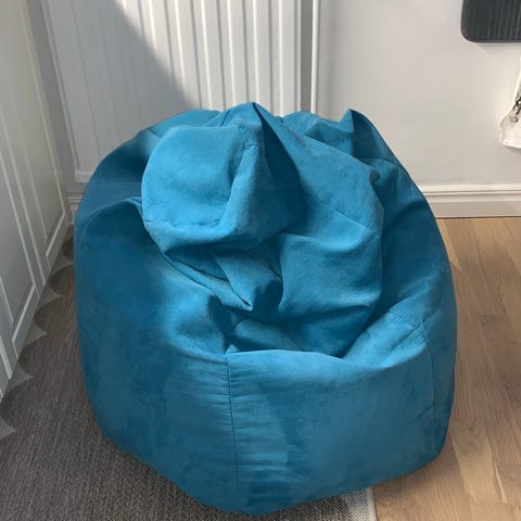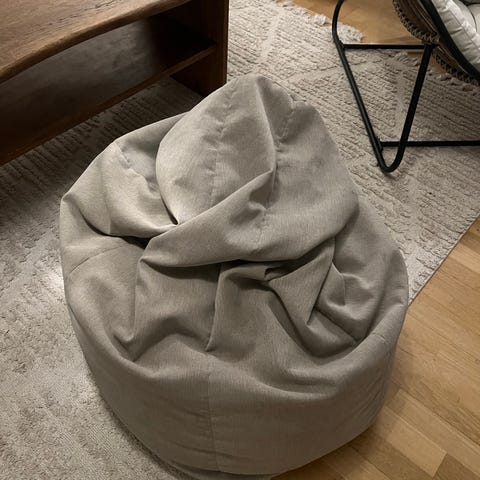 En skön saccosäck / sittpuff i gott skick. Färg: grå. Finns för upphämtning i Kallhäll.