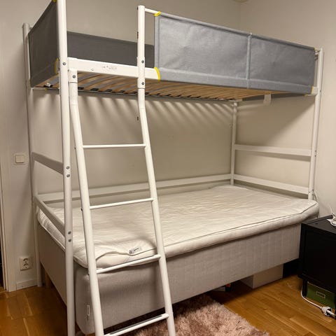 IKEA Loftsäng Vitval. Sängen är utformad med en stege för att enkelt komma upp till sovplatsen. Plats för skrivbord eller läshörn under. Madrass kan ingå om det önskas.