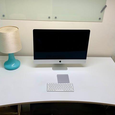 Tre borrhål i bakkant troligen efter skrivbordslampa.