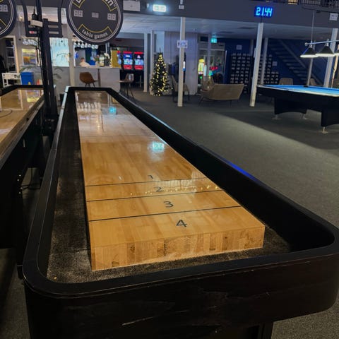 Shuffleboard 18 fot i tävlingsstandard med elektroniskt scoreboard