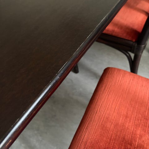 Rejäl och fin matgrupp i tungt trä. Bord och 6 stolar. Kom med bud, snabb hämtning prioriteras.