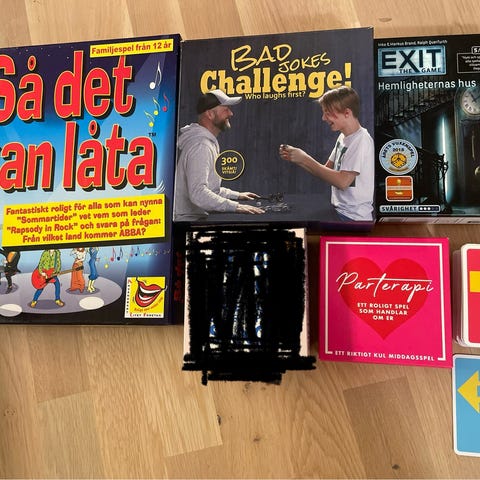 Två olika kortspel: Förklara Färdiga Gå! och Quiz Nödig på resan. Spelen består av kort med frågor och instruktioner, avsedda för underhållning och quiz.
