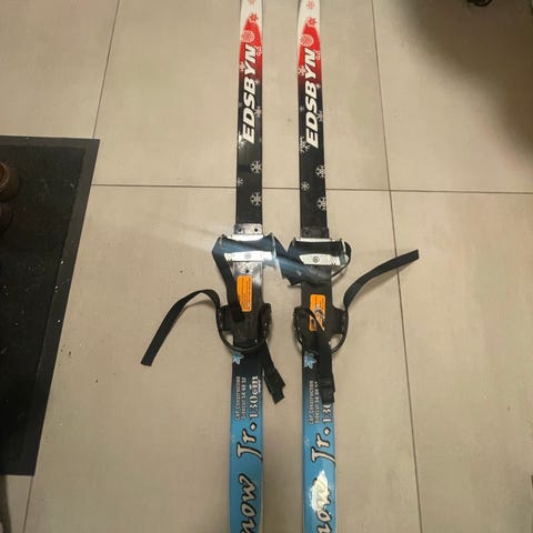 Längskidor barn 140cm med tillhörande stavar.